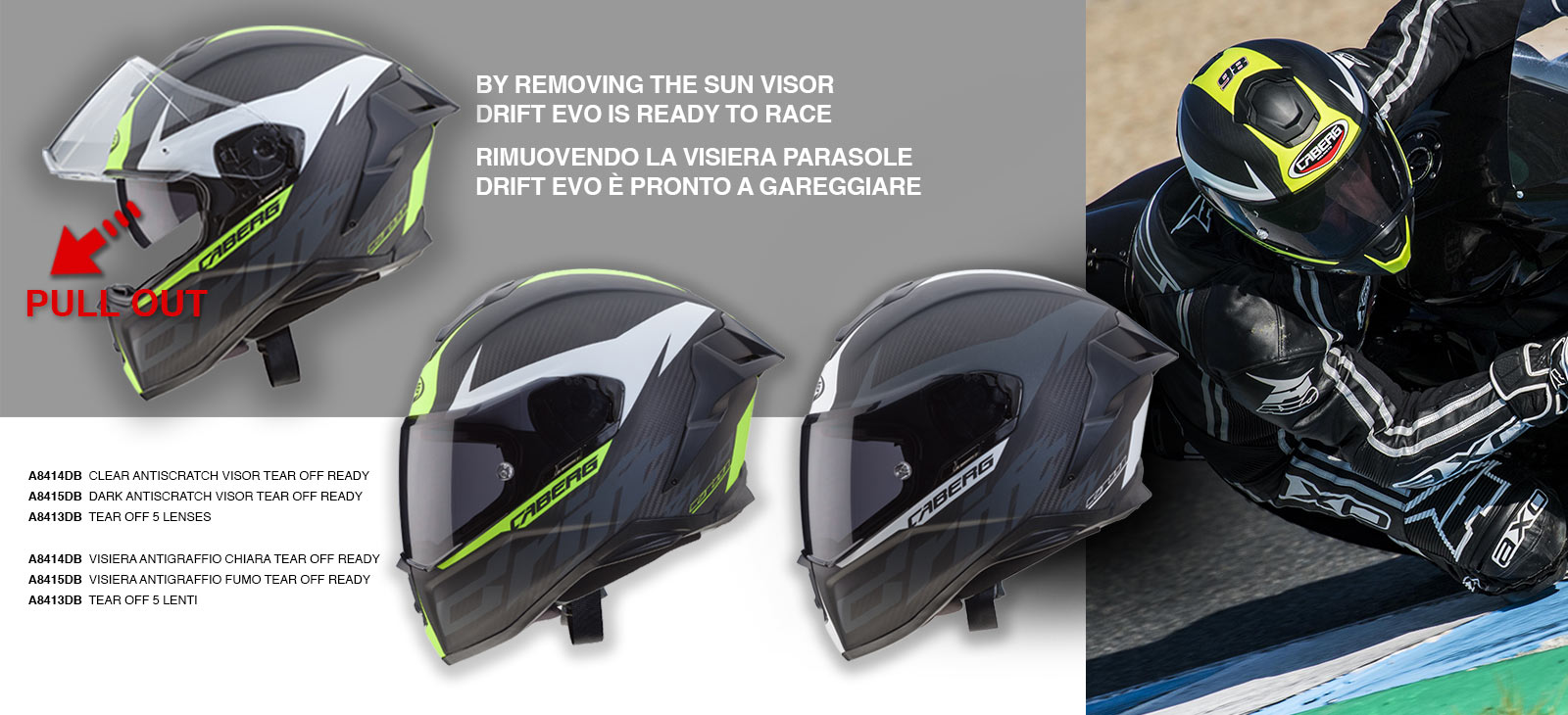 DRIFT EVO se nudi u grafičkoj verziji SPEEDSTER , GAMA i INTEGRA sa trokompozitnom školjkom (ugljenik, kevlar i stakloplastik) i u verziji CARBON sa školjkom u potpunosti u karbonskim vlaknima koja je lakša od trokompozitne verzije do 100 gr.
