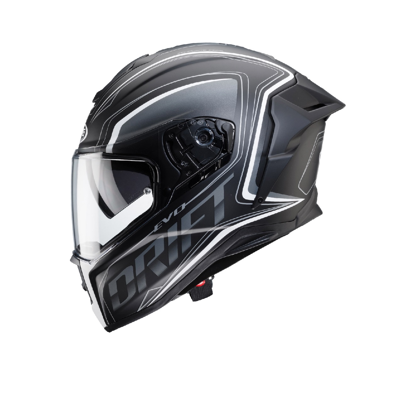 DRIFT EVO mehanizam za brzo oslobađanje omogućuje samo-podešavanje vizira koji garantuje bliski kontakt vizira i otvora kacige. Zahvaljujući vizirskom mehanizmu sa dvostrukim pokretom opruge, neće biti neophodno ručno regulisanje, kako bi se izbegao dolazak vode ili vazduha. Štaviše, ručica sa leve strane mehanizma za vizir pristaje da zaustavi poziciju vizira na 0,5cm od otvora kako bi se izbeglo ili eliminisalo fogovanje(zamagljivanje), čak i pri većoj brzini. Kada je ručica podignuta, vizir je zaključan kako bi se izbeglo iznenadno otvaranje tokom vožnje ili pada.