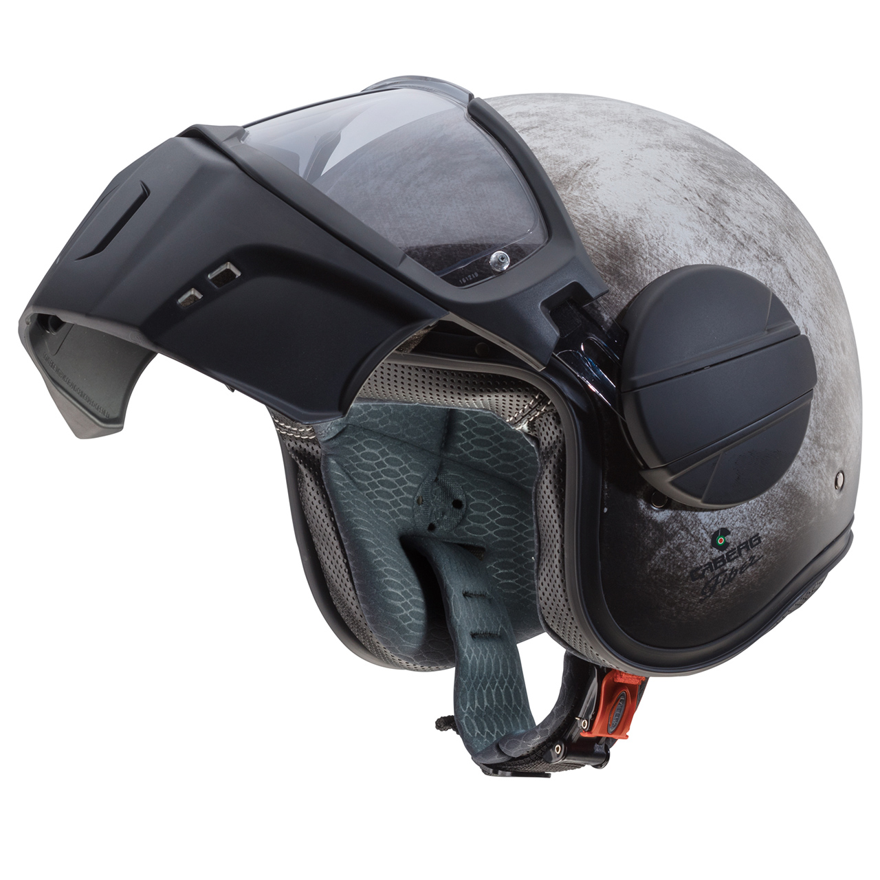 Ovaj Jet je, zapravo, opremljen ne samo sa posebnim vizirima koji se drže na licu zahvaljujući profilu pene duž unutrašnje donje strane vizira, već i sa maskom koja je jednostavna za zaštitu lica od hladnoće u zimskim mesecima i od gutanja previše prašine i izduvnih gasova  u letnjem vperiodu  …