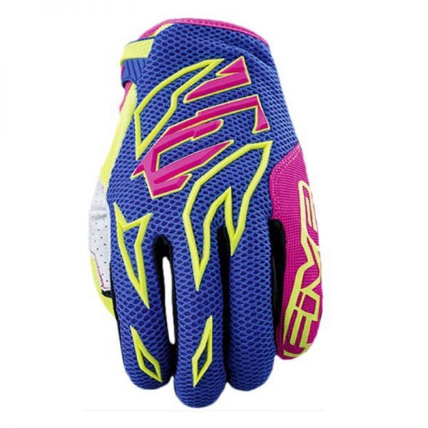 Ultra-ventilisana motokros rukavica. Potpuno redizajnirana 2017.Dlan u sintetičkoj koži. Gornji deo rukavice u velikoj mrežici za poboljšan protok vazduha. TPR i Velcro podešavanje tab. Konture prstiju u Likri. I neka pametna vizuelna privlačnost našeg dizajnera: logotip FIVE na vrhu ruke dizajniran je da bude “čitljiv” od daleka, ali ne nužno iz blizine.
